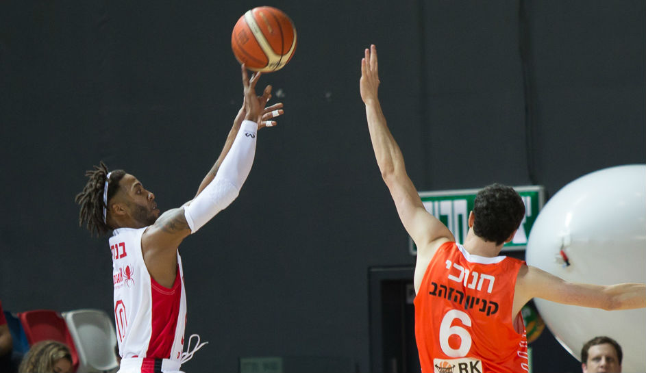 חנוכי מנסה למנוע מבנקס את השלשה (צילום: עודד קרני)