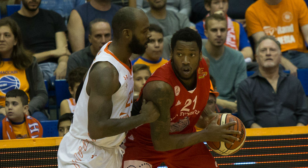 גריפין לוקח את תומאס עם הגב לסל (צילום: עודד קרני)