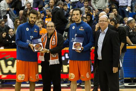 חנוכי ובן שימול עם מגנים על 2,000 נקודות ו-1,000 אסיסטים בהתאמה (צילום: עודד קרני)