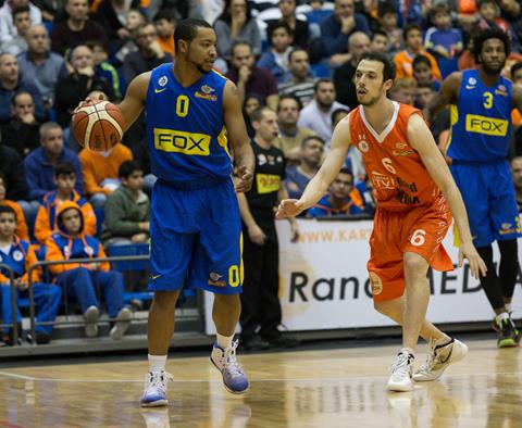 במשחקה הראשון תחת המאמן הלטבי, גברה מכבי "FOX" ת"א בחוץ על מכבי "ראנד מדיה" ראשל"צ 84:93. אייברסון ולנדסברג בלטו (צילום: עודד קרני)