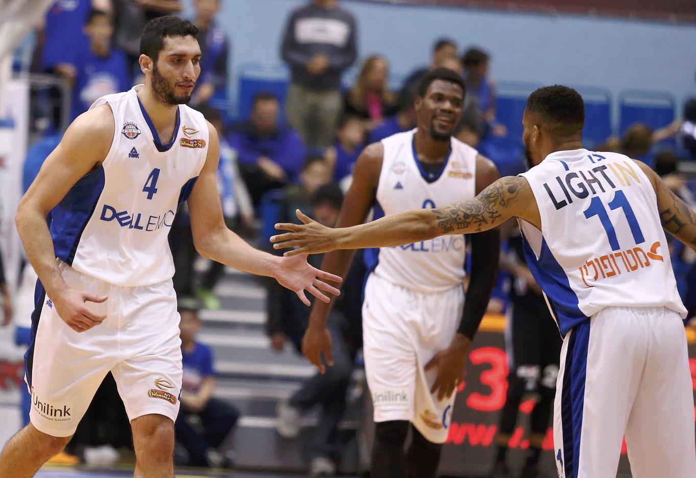 גרין, אדריאן ומשעור יכולים לחייך. עוד ניצחון מרשים (צילום: אלן שיבר)