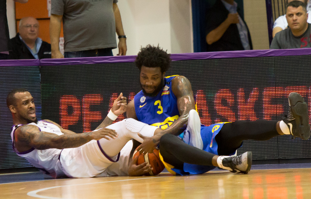 בראון וראד יורדים לריצפה כדי להילחם על הכדור (צילום: עודד קרני)