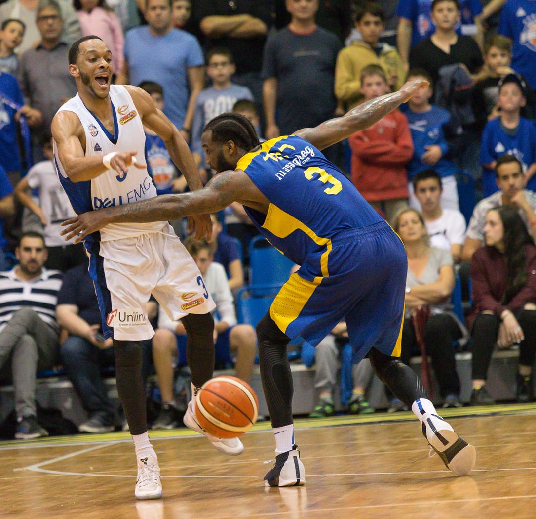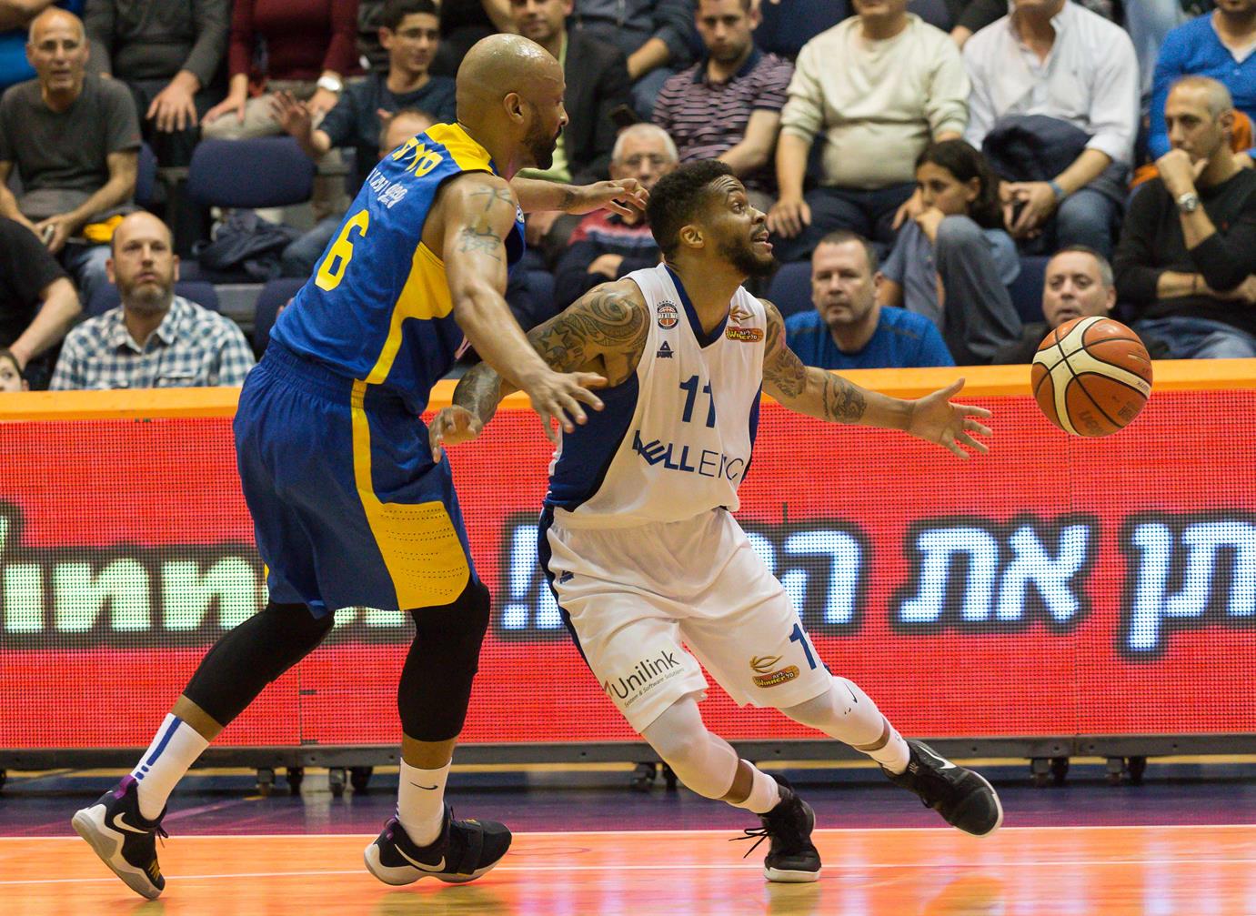 בני הרצליה התגברה על חסרונו של כרם משעור וניצחה את מכבי "FOX" ת"א בפעם השלישית העונה, 88:94. ג'ף אדריאן וחליל קנאסביק הצטיינו (צילום: עודד קרני)