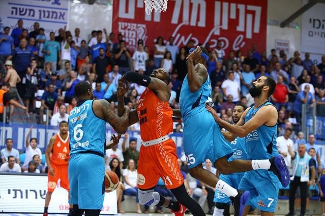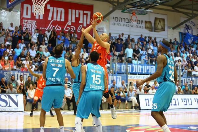 מכבי "ראנד מדיה" ראשל"צ ניצחה בחוץ במשחק החמישי את הפועל "פתאל" אילת 77:82 ותנסה להגן על תוארה בפיינל פור בהיכל מנורה מבטחים (צילום: לירון מולדובן)