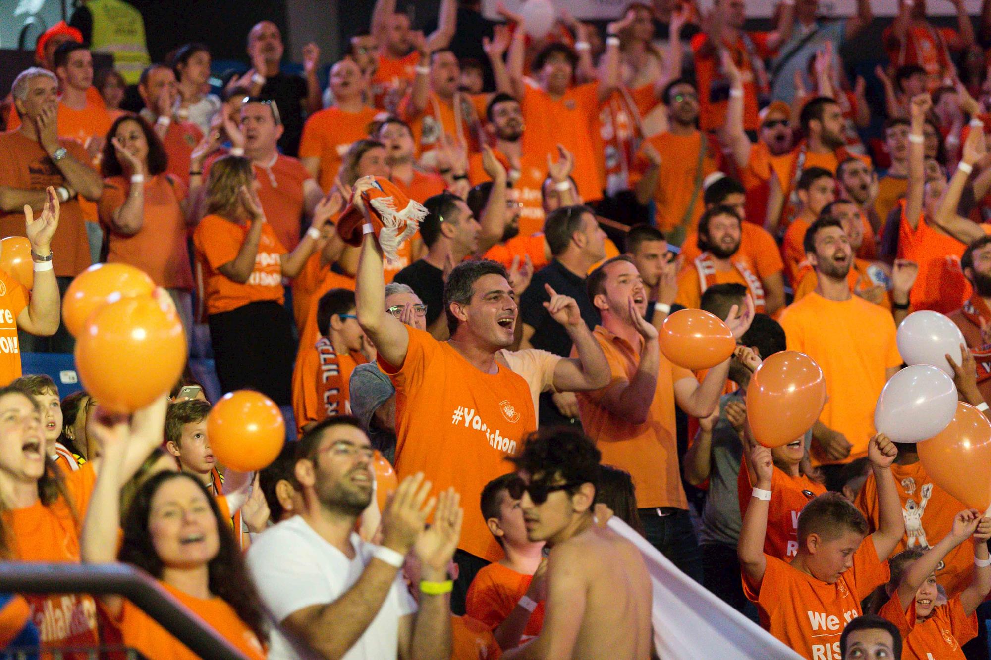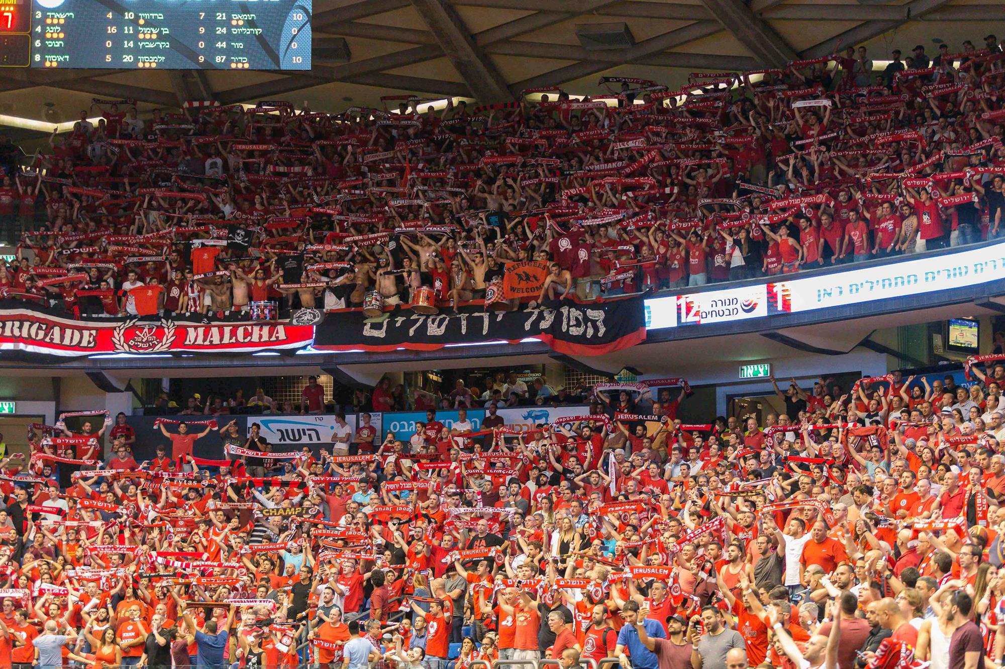 הצגה של האדומים והכתומים ביציעים (צילום: עודד קרני)