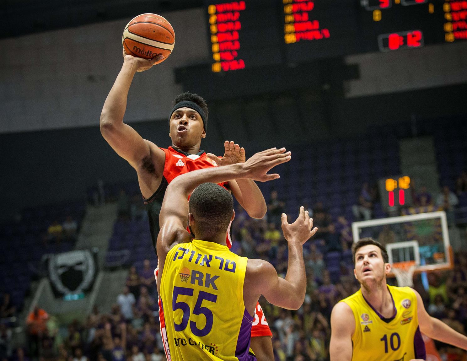 סטון קולע מעל טראוויק. רבע ראשון בקצב מהיר (צילום: עודד קרני)
