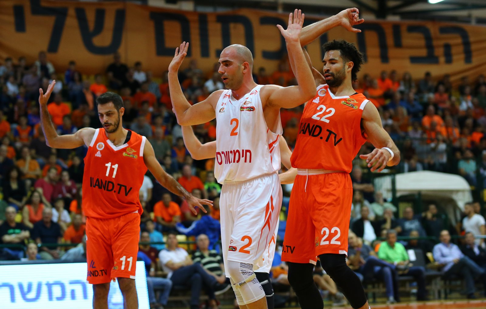 כדיר בין קרופורד ובן שימול. פתיחה חזקה של האורחים (צילום: לירון מולדובן)