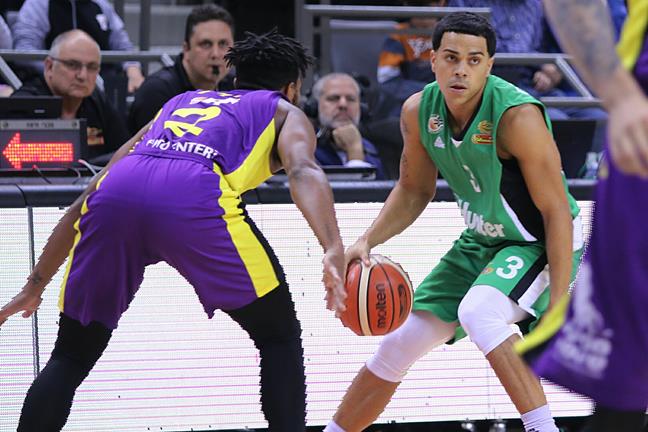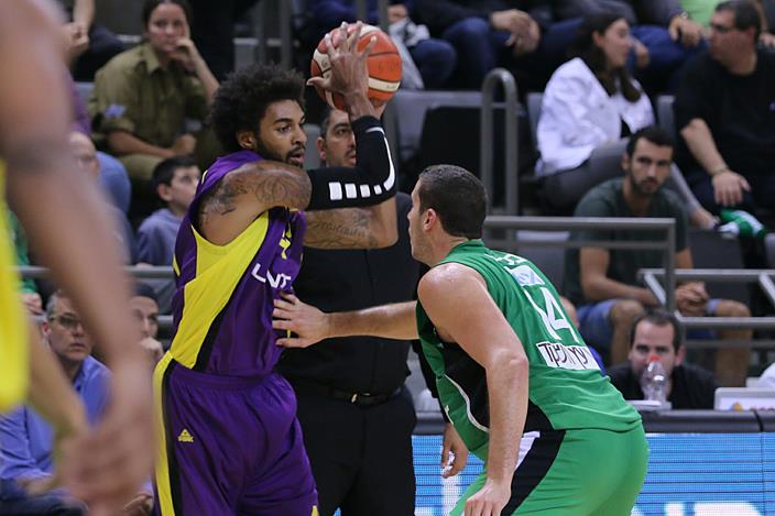 גלן רייס ג'וניור הרשים גם בבכורה בליגה וביחד עם וולדן ואלכסנדר הוביל את הפועל "יונט" חולון ל-69:75 בחוץ על מכבי "Hunter" חיפה (צילום: לילך וייס)