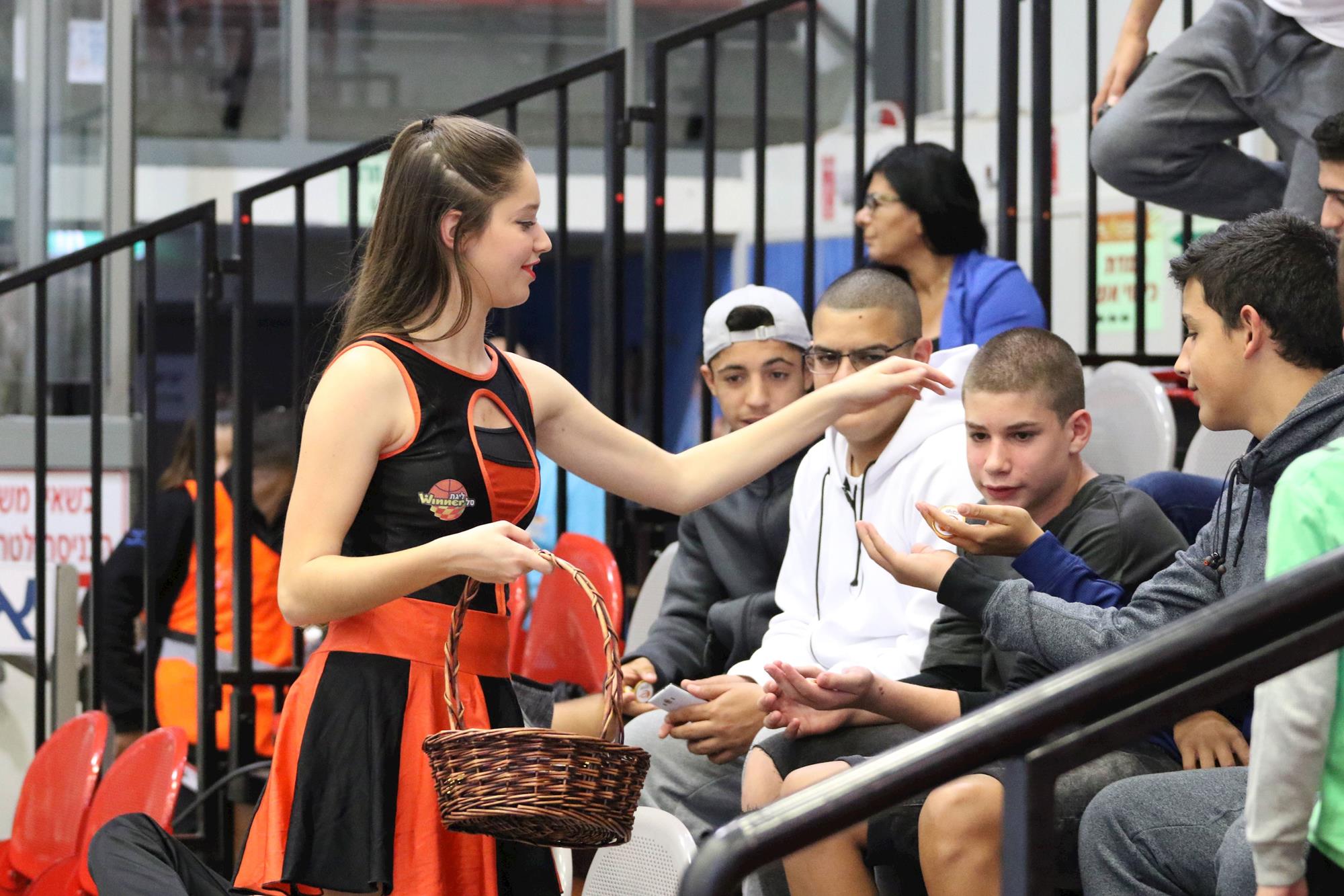 המעודדות מחלקות מטבעות שוקולד ביציע (צילום: פרנסיסקו די סטסיו)