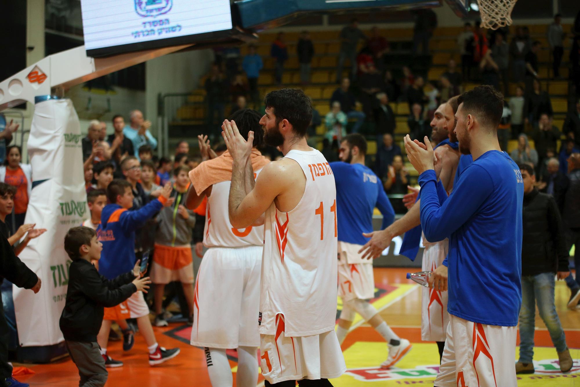 שחקני נס ציונה מודים לקהל בסיום (צילום: גלית יערי)