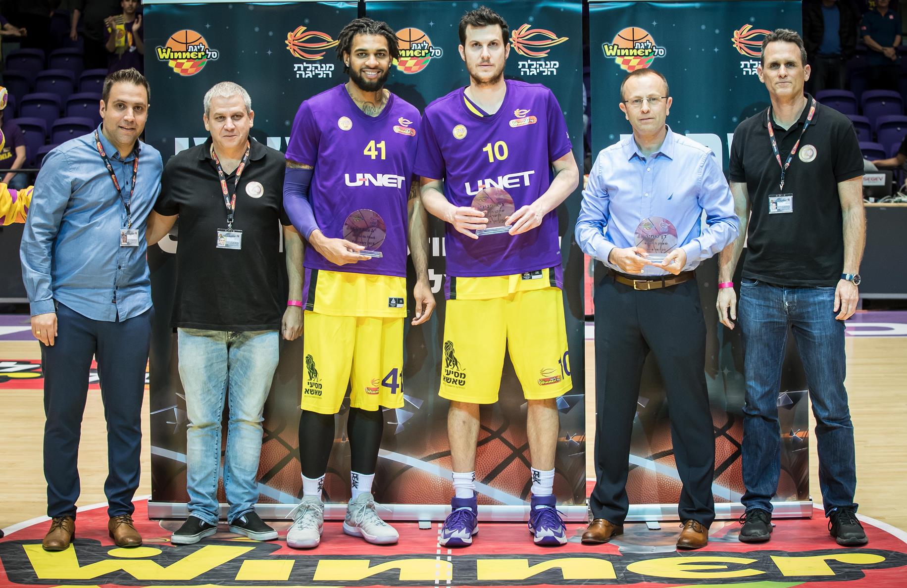 שמיר, פניני ורייס ג'וניור עם הפרסים לנבחרי חודש פברואר (צילום: עודד קרני)