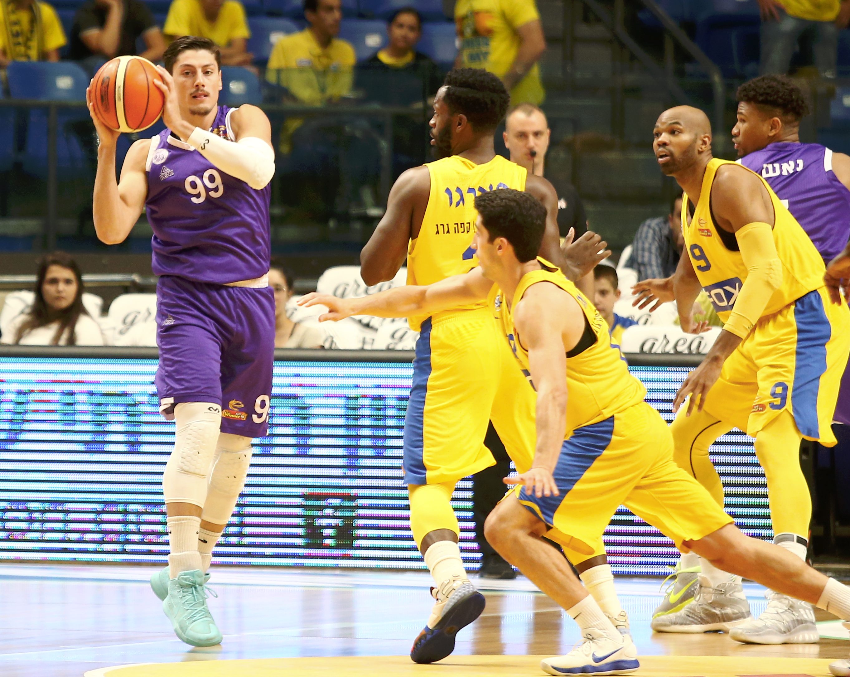 הצופים במשחק הערב (חמישי) בהיכל מנורה מבטחים חשבו לרגע שאולי הם חוזים בשידור חוזר של המפגש הקודם בין מכבי "FOX" ת"א לעירוני נהריה: הסגולים נראו טוב מאוד במחצית השנייה והוליכו ביתרון מבטיח לקראת הסיום, אלא שאז הצהובים העבירו הילוך בהגנה, טסו לסלים קלים וברחו לניצחון, 87:94 - תסריט דומה מאוד לסיבוב שעבר. מכבי ת"א חזרה למקום הראשון לפחות עד מחר, בעוד עירוני נהריה תצפה בעניין במשחק ברוממה, בידיעה שניצחון ירוק בו יוריד אותה מתחת לקו האדום.