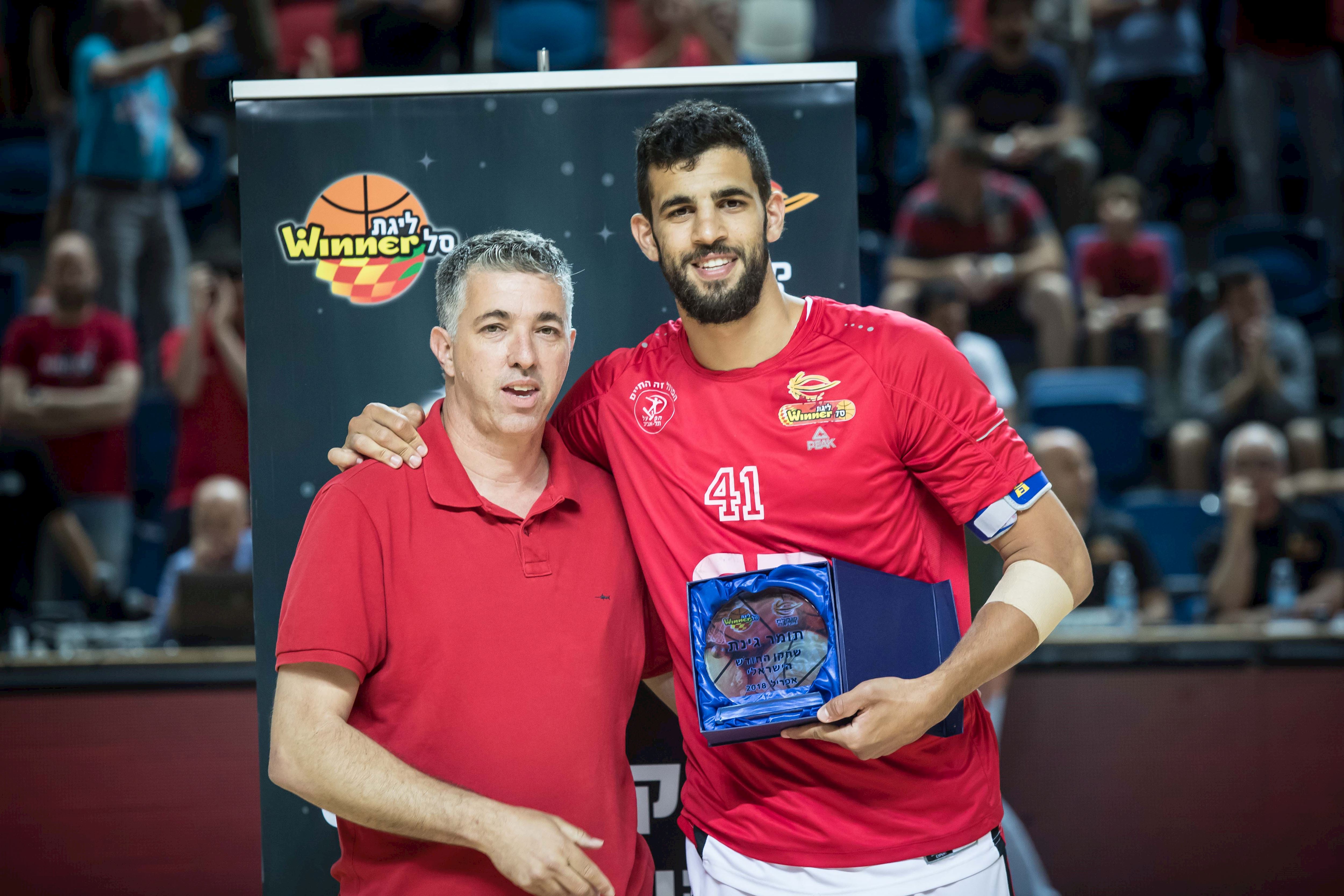 גינת מקבל מהיו"ר כהן את תואר שחקן החודש הישראלי (צילום: עודד קרני)