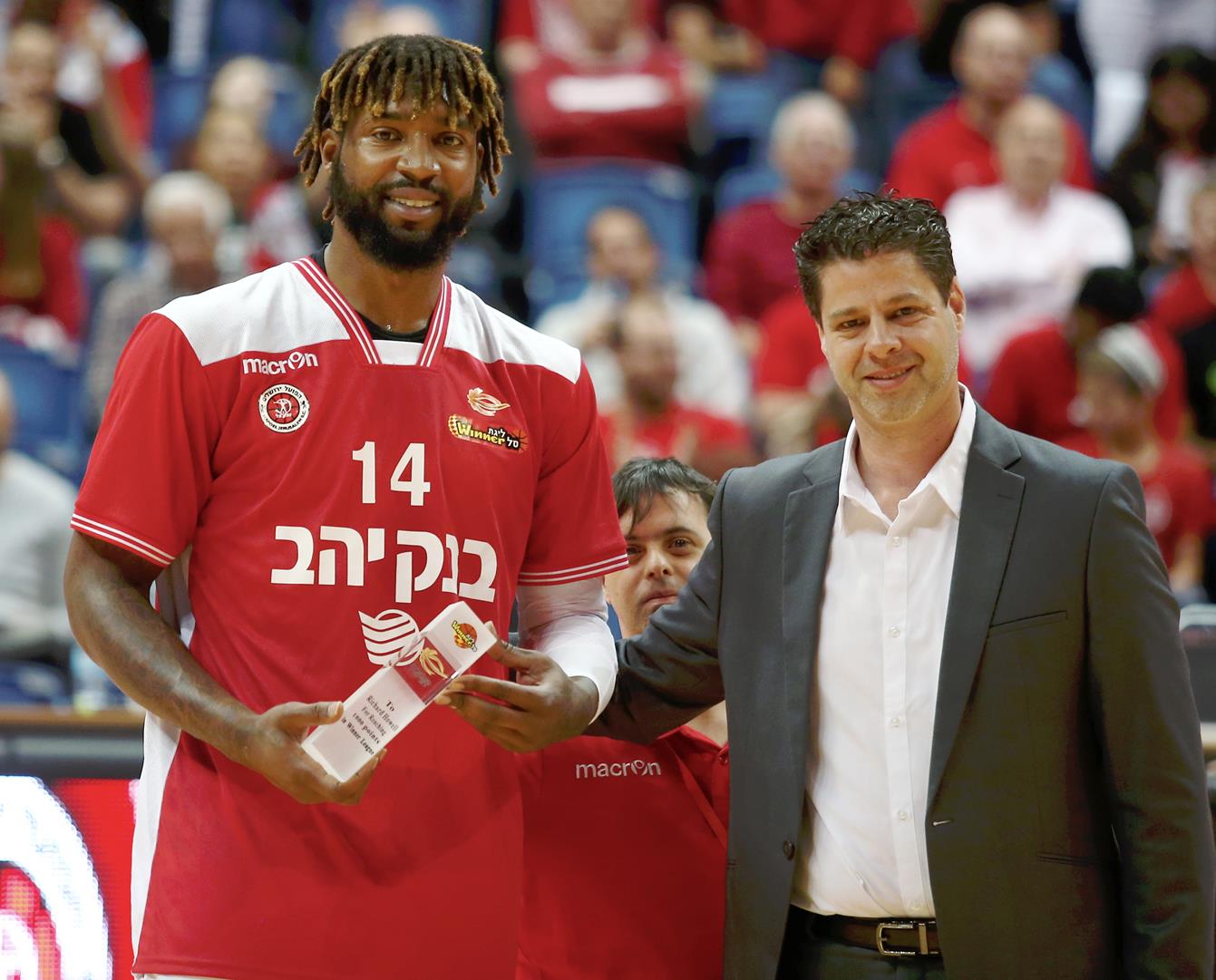האואל מקבל מגן על הגעתו ל-1,000 נקודות בליגת ווינר סל (צילום: אלן שיבר)