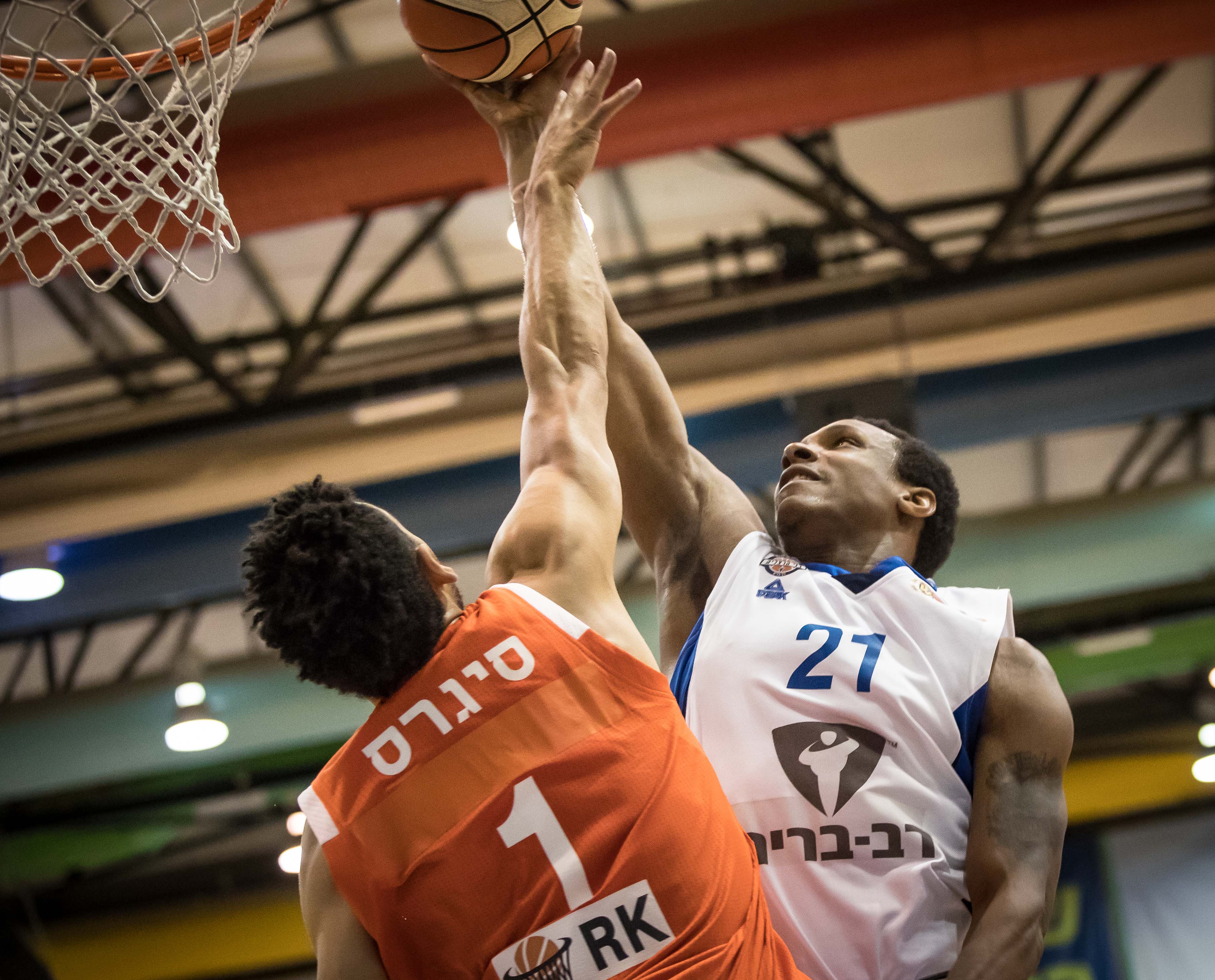 מכבי "ILAND.TV" ראשל"צ הציגה את ערב השיא שלה העונה והשיגה 69:100 ענק בחוץ על בני "רב בריח" הרצליה. קרופורד ולנגפורד הצטיינו (צילום: עודד קרני)