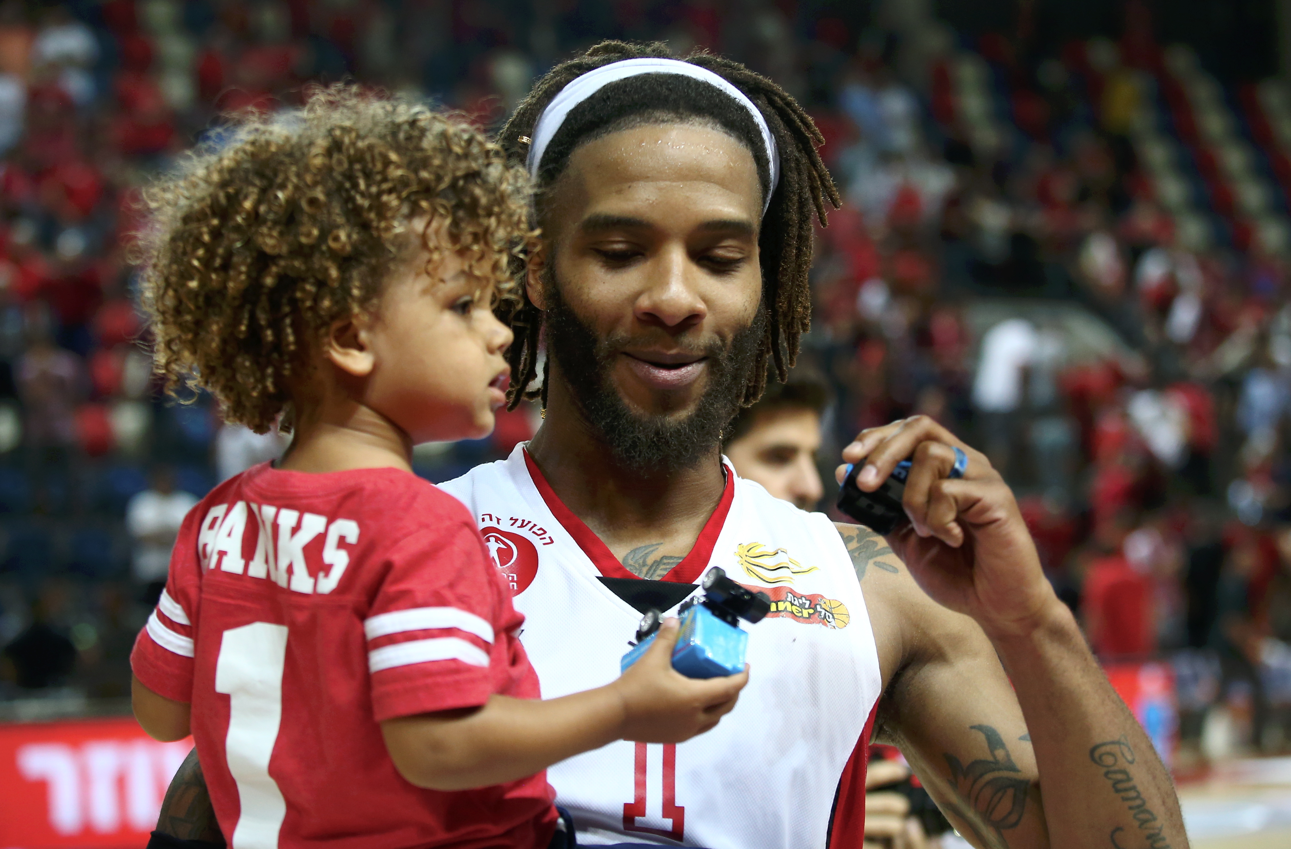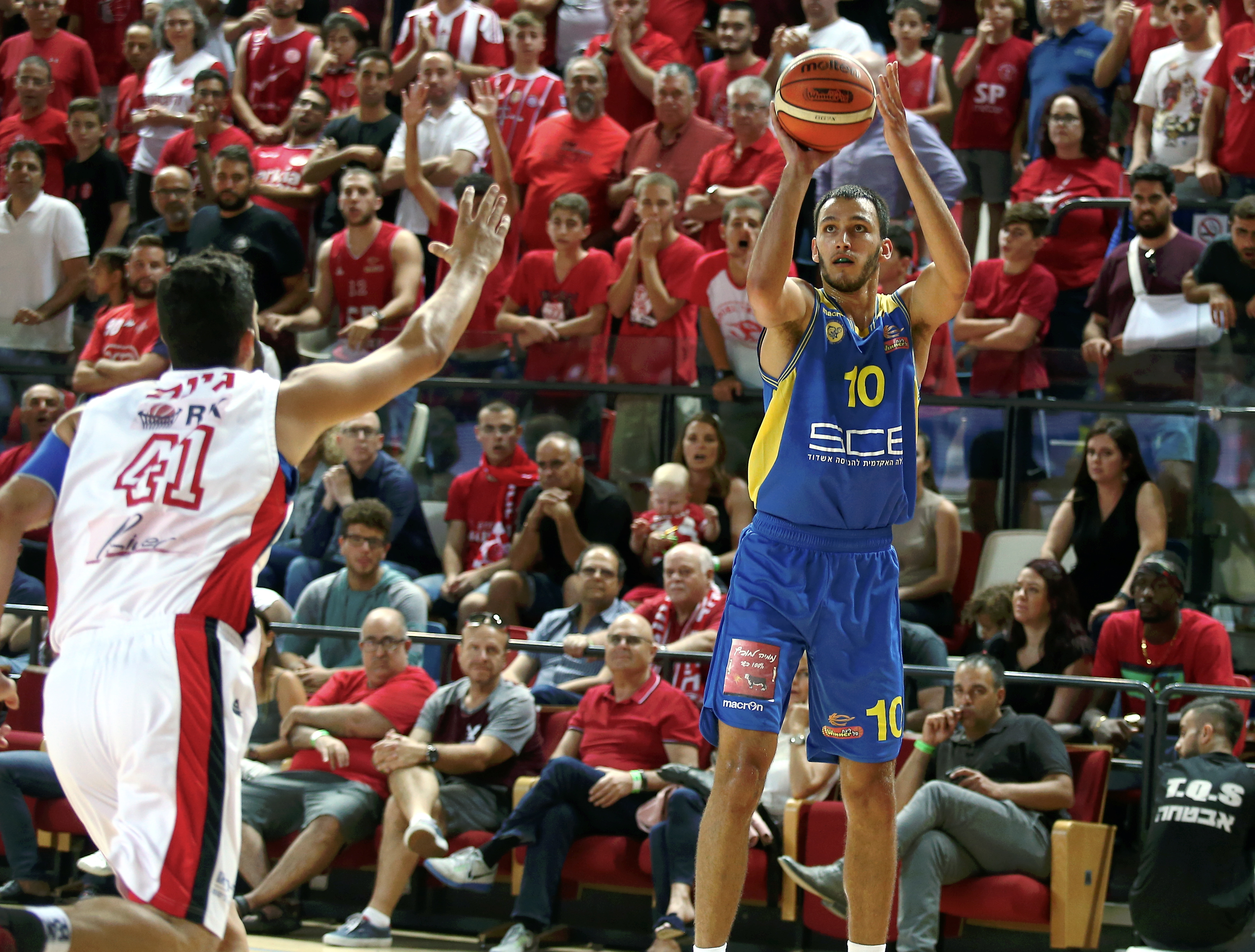 לוי קולע שלשה מעל גינת (צילום: אלן שיבר)