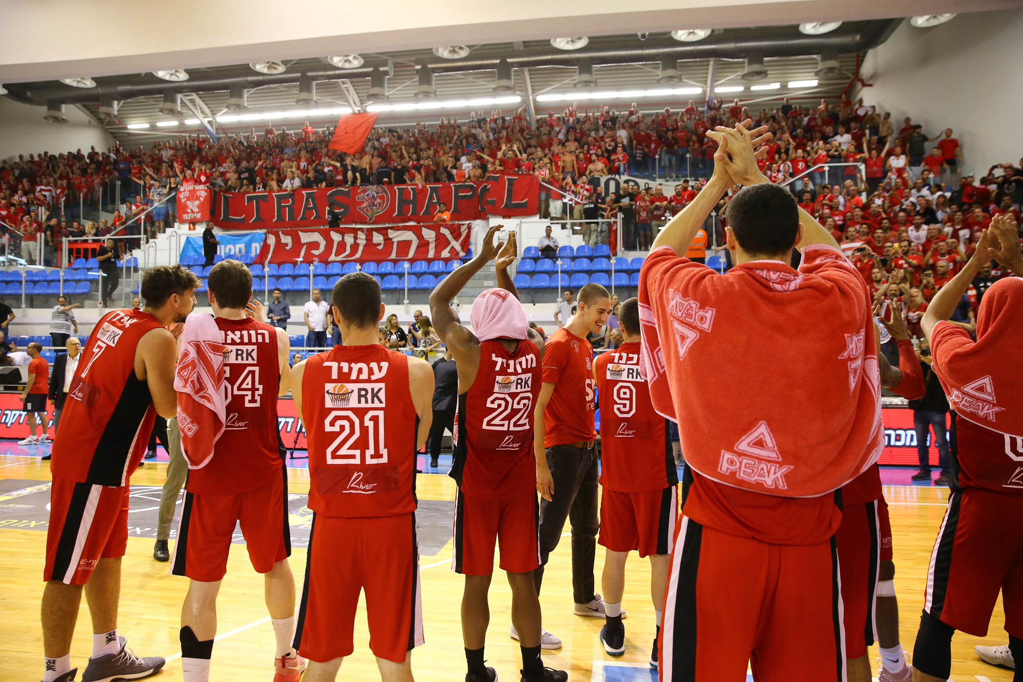 האדומים מודים למאות האוהדים שליוו אותם לאשדוד (צילום: לירון מולדובן)