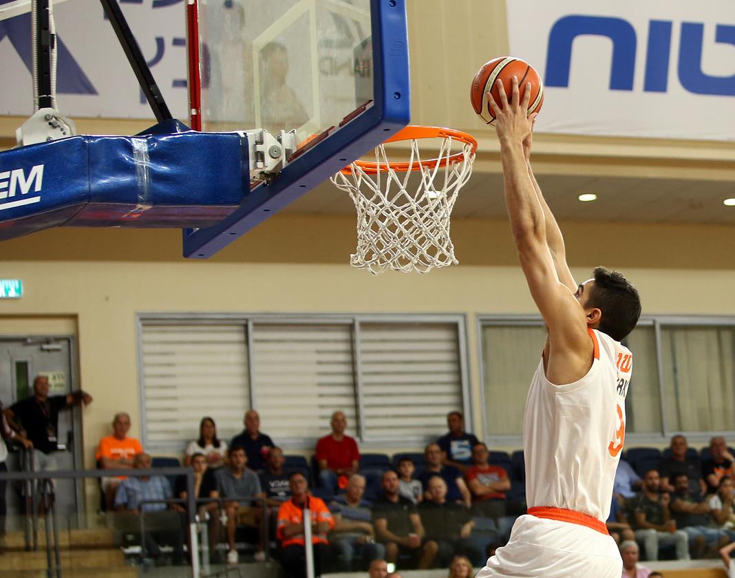 שגב מטביע את הסל הראשון של המשחק (צילום: אודי ציטיאט)