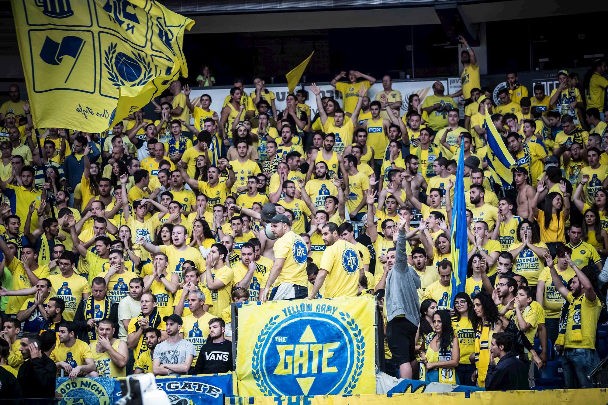 צהוב נגד אדום ביציעי ההיכל (צילומים: עודד קרני)