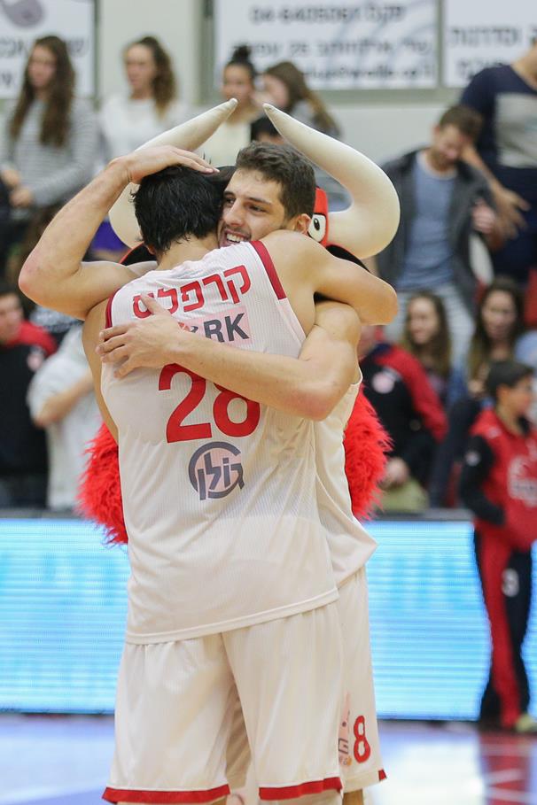 שוכמן וקרפלס בחיבוק של מנצחים (צילום: צחי רייזל)