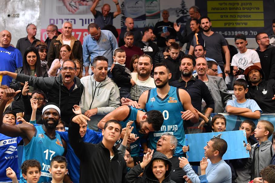 שחקני אילת חוגגים ביציע בסיום (צילום: יוד צילומים אילת)