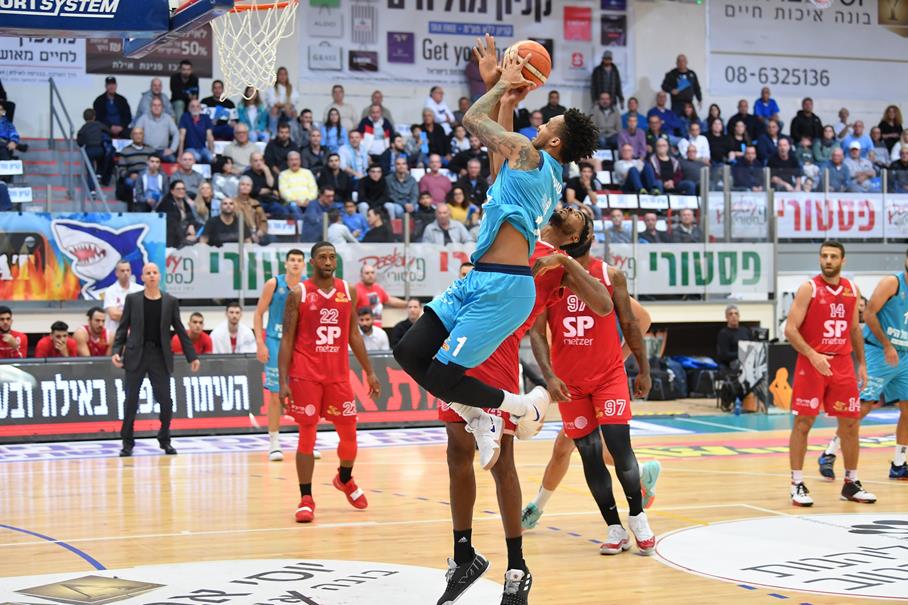 הפועל "מול הים" אילת התאוששה מההדחה מהגביע עם ניצחון תשיעי ברציפות בליגה, 89:95 על הפועל "SP מצר" ת"א. טוקוטו ובריימו בלטו (צילום: יוד צילומים)
