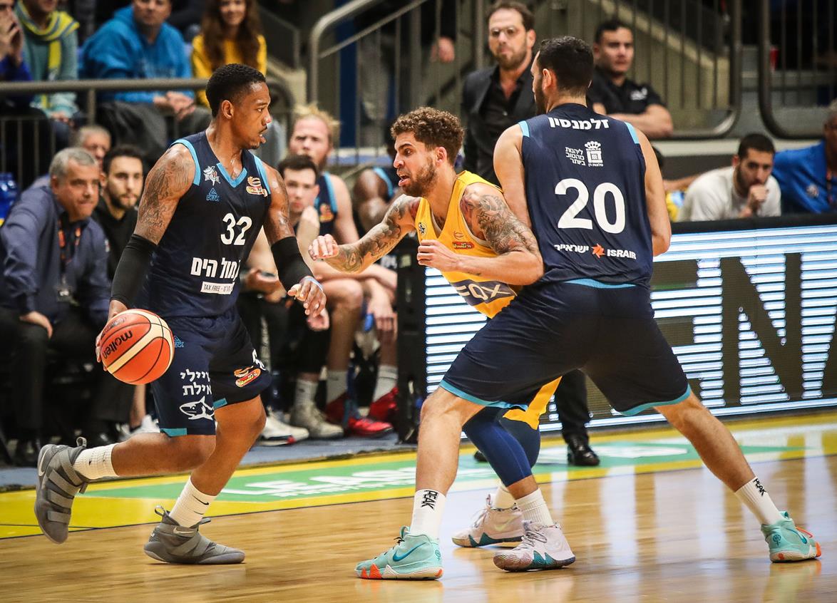 מכבי "FOX" ת"א קטעה את רצף תשעת הניצחונות של הפועל "מול הים" אילת עם 91:101 ביתי לאחר ריצת 2:14 מאוחרת. 19 נקודות לווילבקין (צילום: עודד קרני)