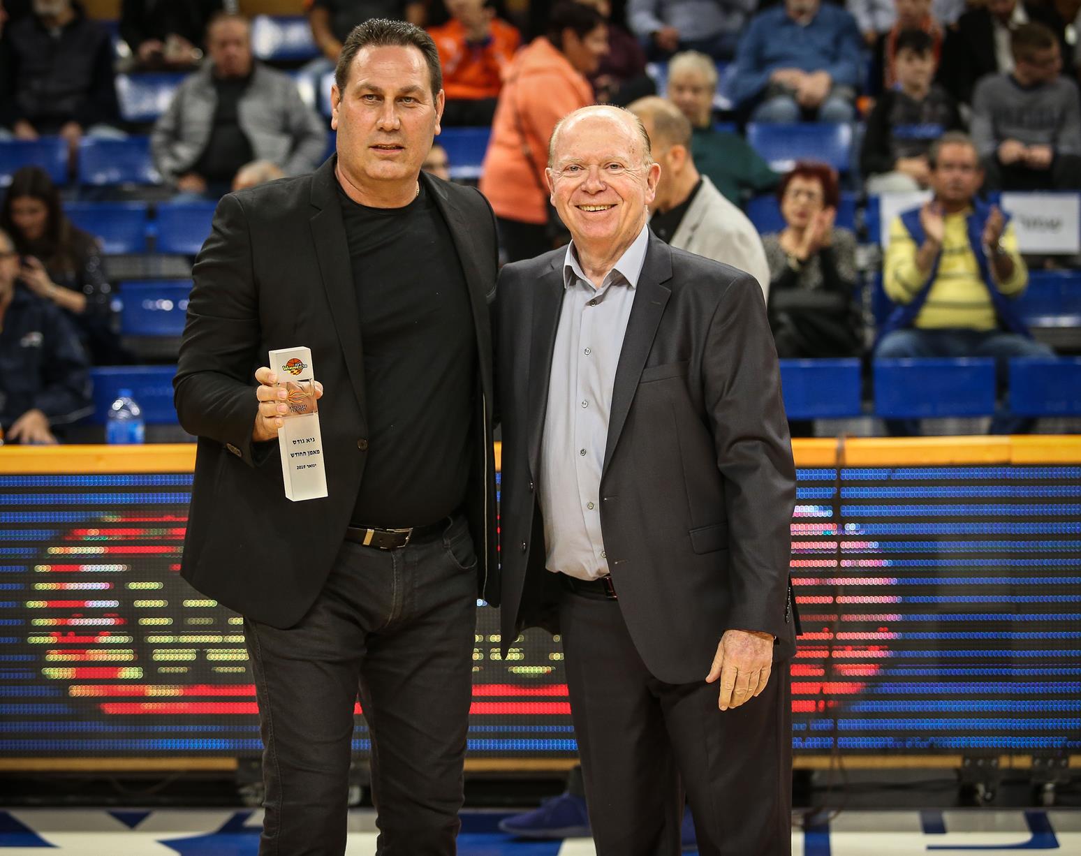 גודס מקבל מהיו"ר פרי את תואר מאמן חודש ינואר (צילום: עודד קרני)