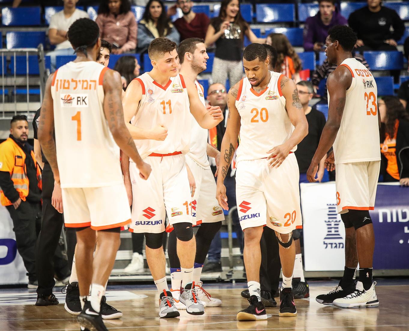 הכתומים חוגגים ניצחון לפני חצי גמר הגביע (צילום: עודד קרני)