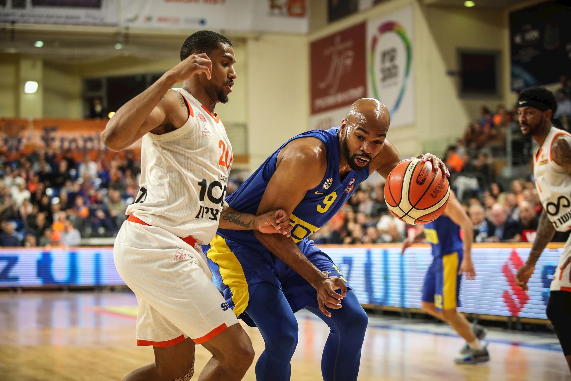 סטיבנס מתחיל מהלך עם הגב לסל מול כהן (צילום: עודד קרני)
