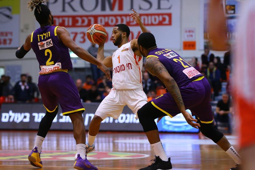 בראון-רמירז מחפש מסירה מול וולדן וג'ונס (צילום: לירון מולדובן)