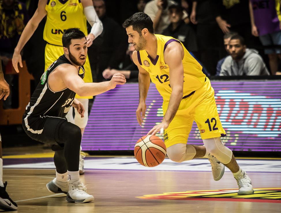 פניני לוקח את בלאט עם הגב לסל (צילום: עודד קרני)