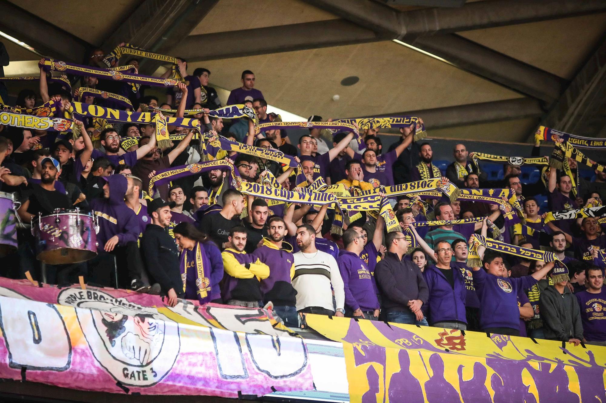 צהוב נגד סגול ביציעים (צילומים: עודד קרני)