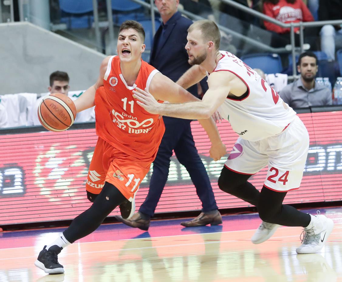 רובינשטיין חוגג סל בכורה בישראל (צילום: דני מרון)