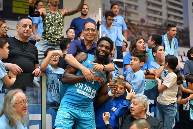 בריימו מקבל אהבה ביציע (צילום: יוד צילומים)