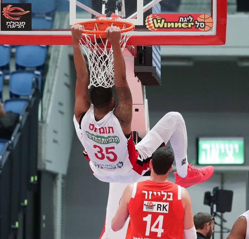 תומאס מתעלל בטבעת אחרי עוד דאנק (צילום: דני מרון)