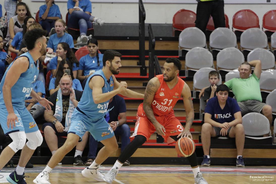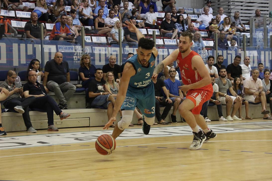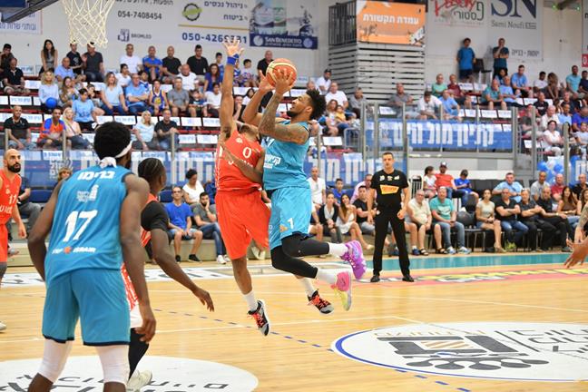 הפועל "מול הים" אילת שמרה על מאזן ביתי מושלם אי פעם מול עירוני "חי מוטורס" נס ציונה עם 89:96 בפתיחת רבע הגמר. בן שימול בלט (צילום: פרנסיסקו די סטסיו)