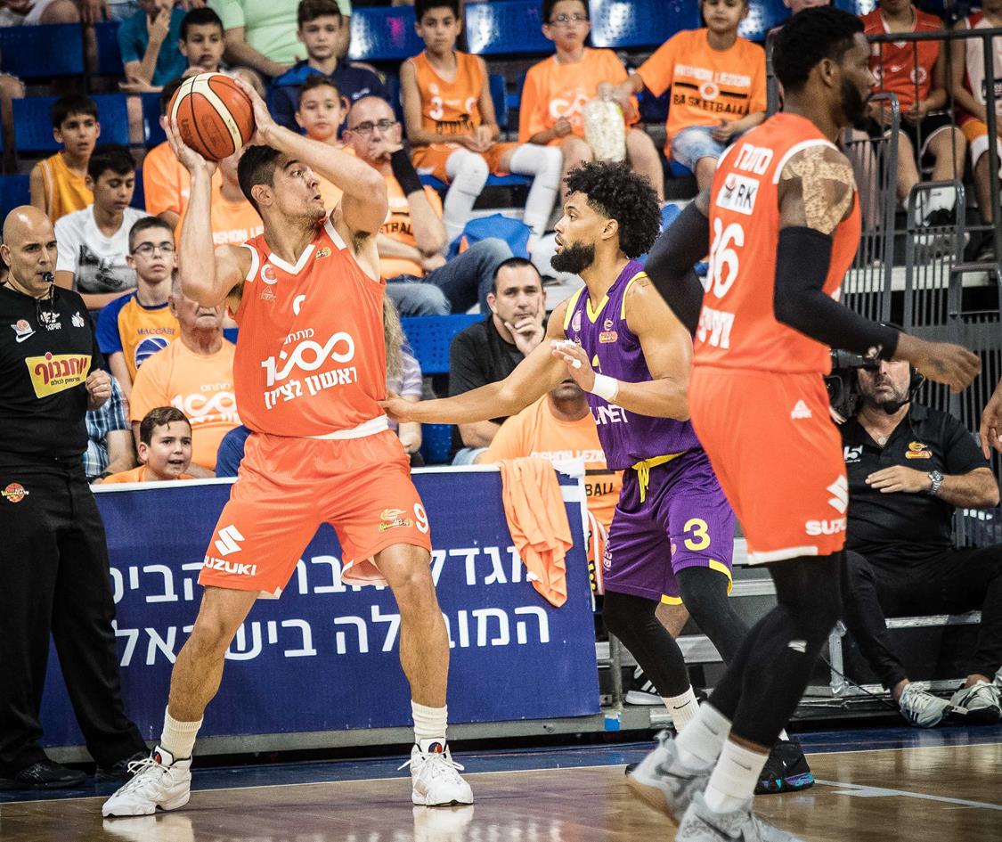 הפועל "יונט" חולון כבר הובילה ב-16 הפרש, אבל שלשה של אריאל כפתה הארכה שבסיומה התקרבה מכבי ראשל"צ לפיינל פור עם 85:95 דרמטי (צילום: עודד קרני)