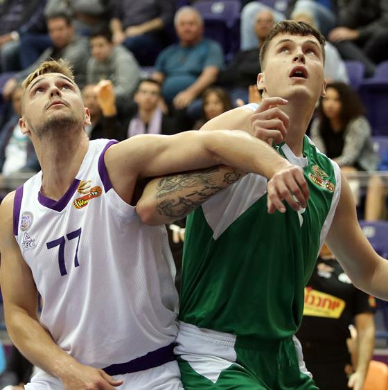 קופרברג וקולשוב במאבק על הריבאונד (צילום: לילך וייס)