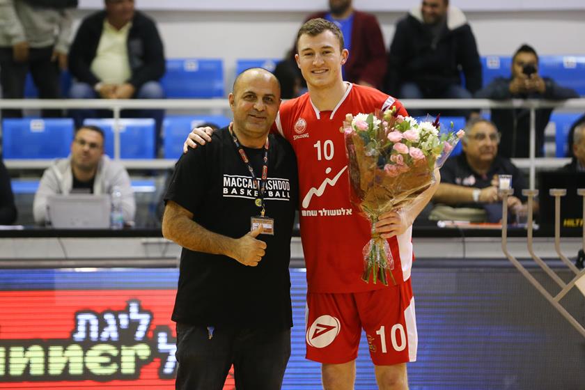 וייס מקבל זר פרחים מקבוצתו לשעבר (צילום: לירון מולדובן)