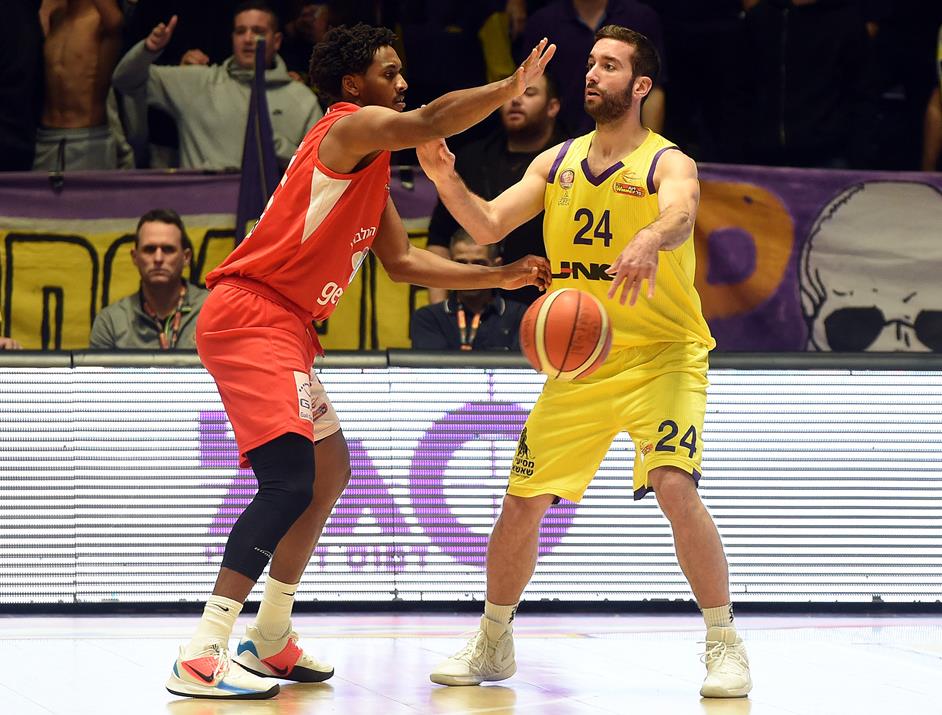 זיו חומק לדלגאדו בדרך לסל (צילום: ברני ארדוב)