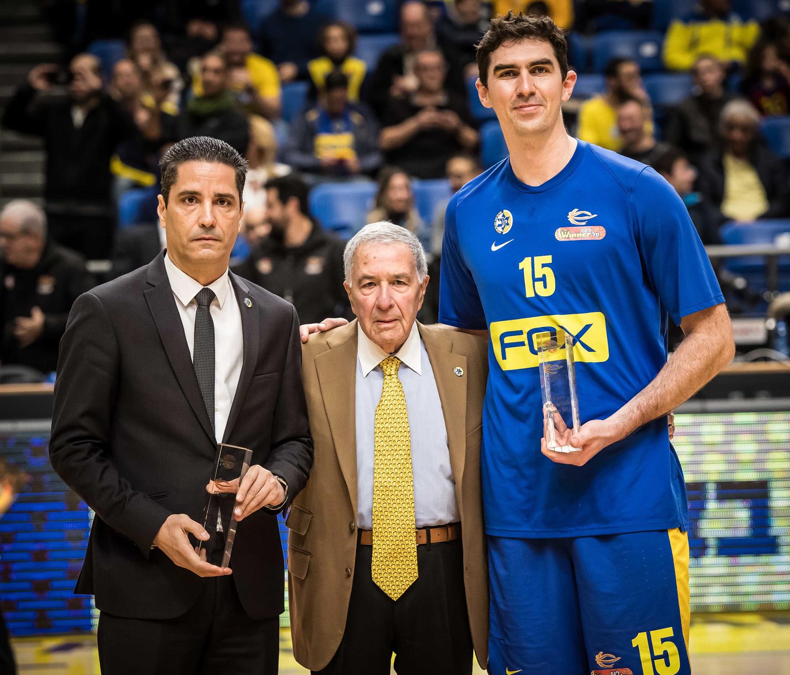 היו"ר מזרחי מעניק לכהן וספרופולוס את תארי שחקן ומאמן החודש (צילום: עודד קרני)