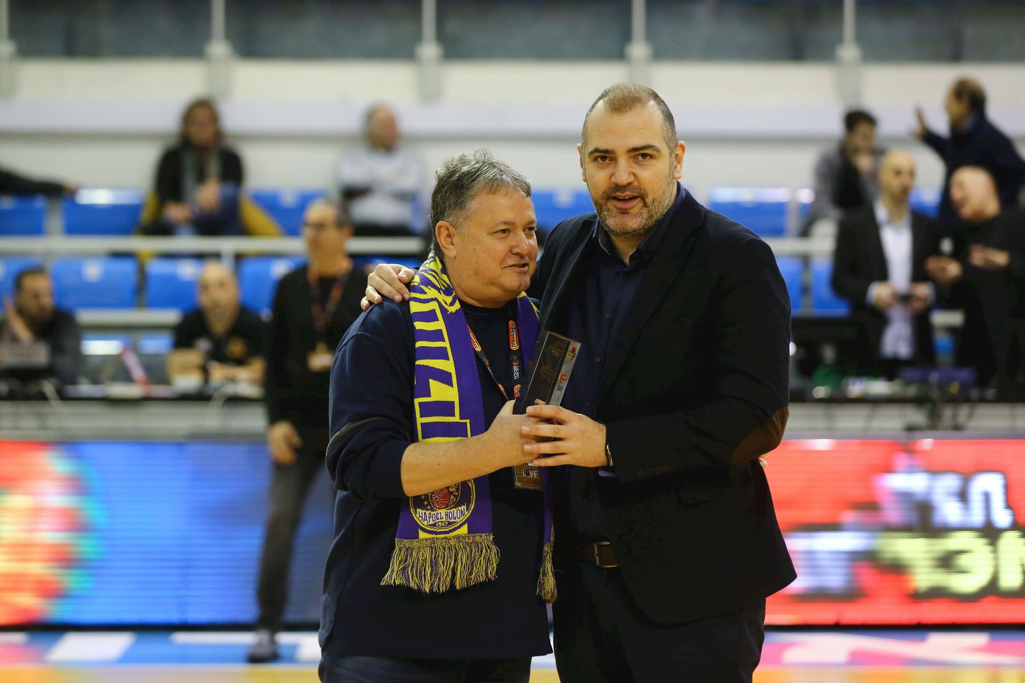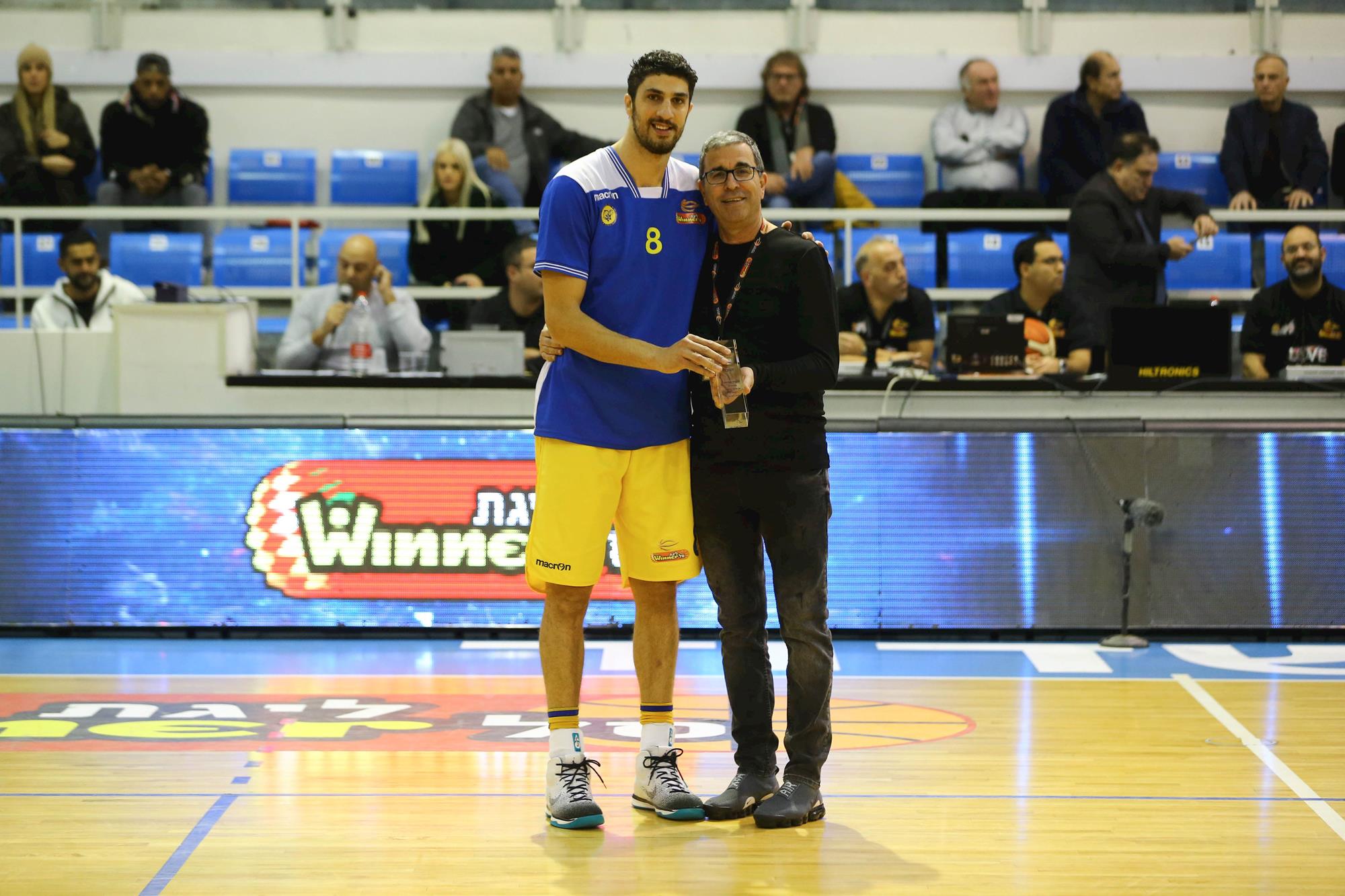 הבעלים אייזיק מעניק לדדאס את תואר מאמן החודש (צילום: לירון מולדובן)