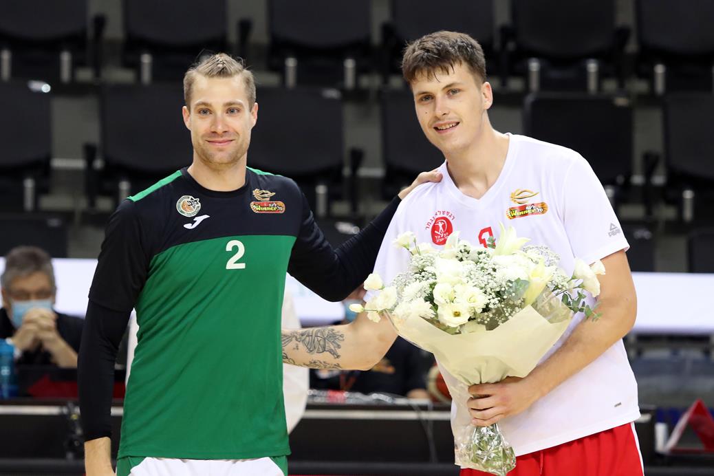 קופרברג מקבל פרחים מהקפטן וורקמן (צילום: לילך וייס)