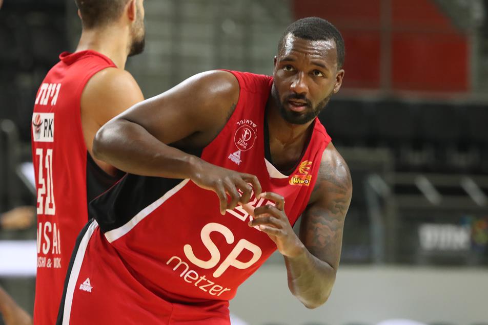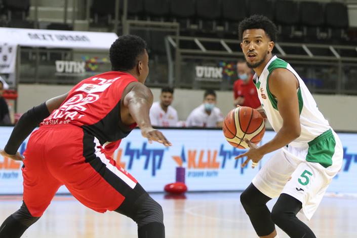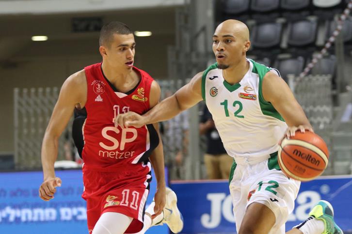 הפועל "SP מצר" ת"א קלעה את 13 הנקודות הראשונות במשחק ולא פיגרה לשנייה בדרך לניצחון חוץ 72:92 על מכבי חיפה. המילטון וגינת הצטיינו (צילום: לילך וייס)