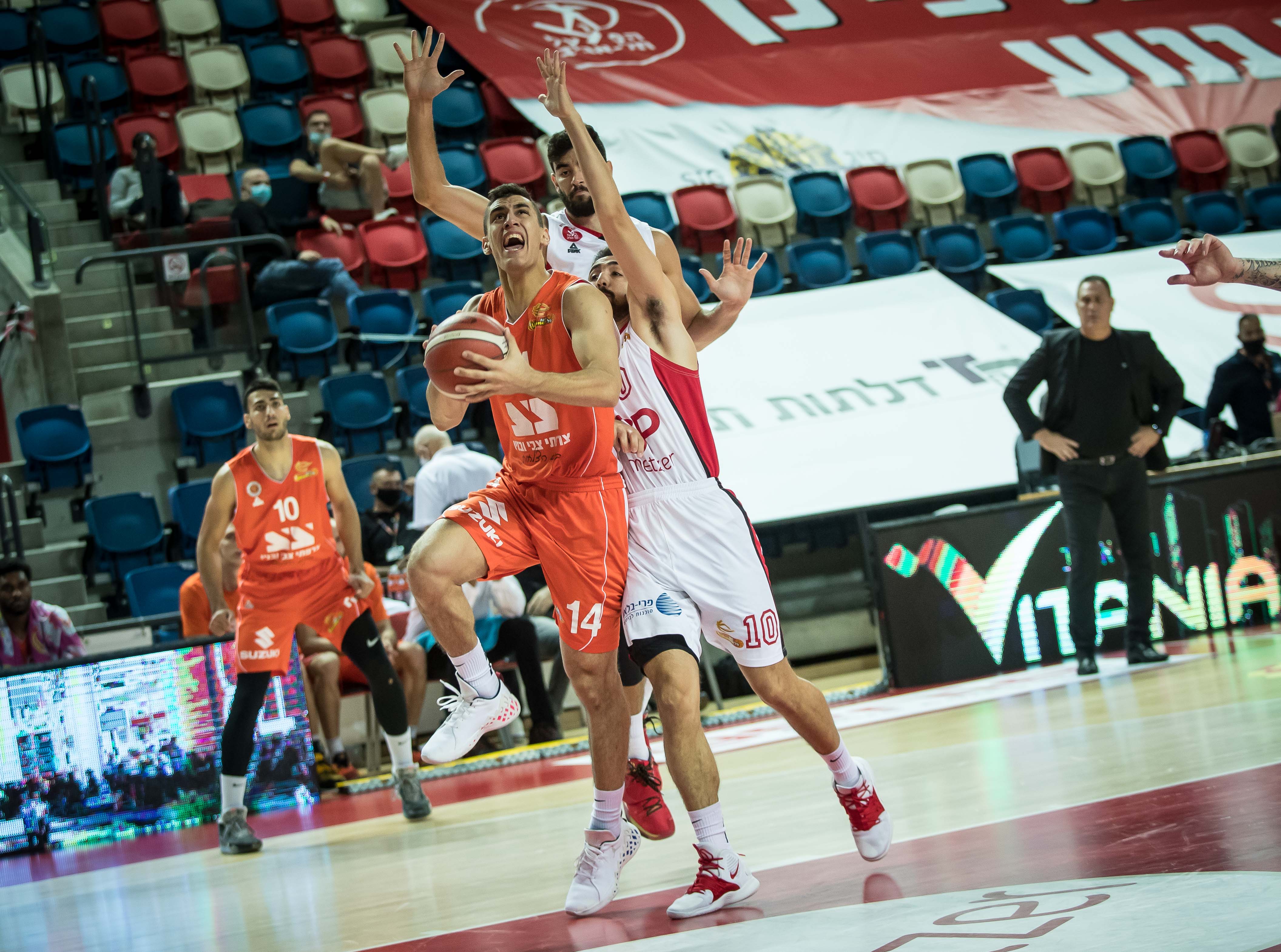 ריצת 4:22 של מכבי "צרפתי צבי" ראשל"צ ברבע השלישי העניקה לה ניצחון 85:91 על הפועל "SP מצר" ת"א. דאבל-דאבלים למיצ'ל ומונרו (צילום: עודד קרני)