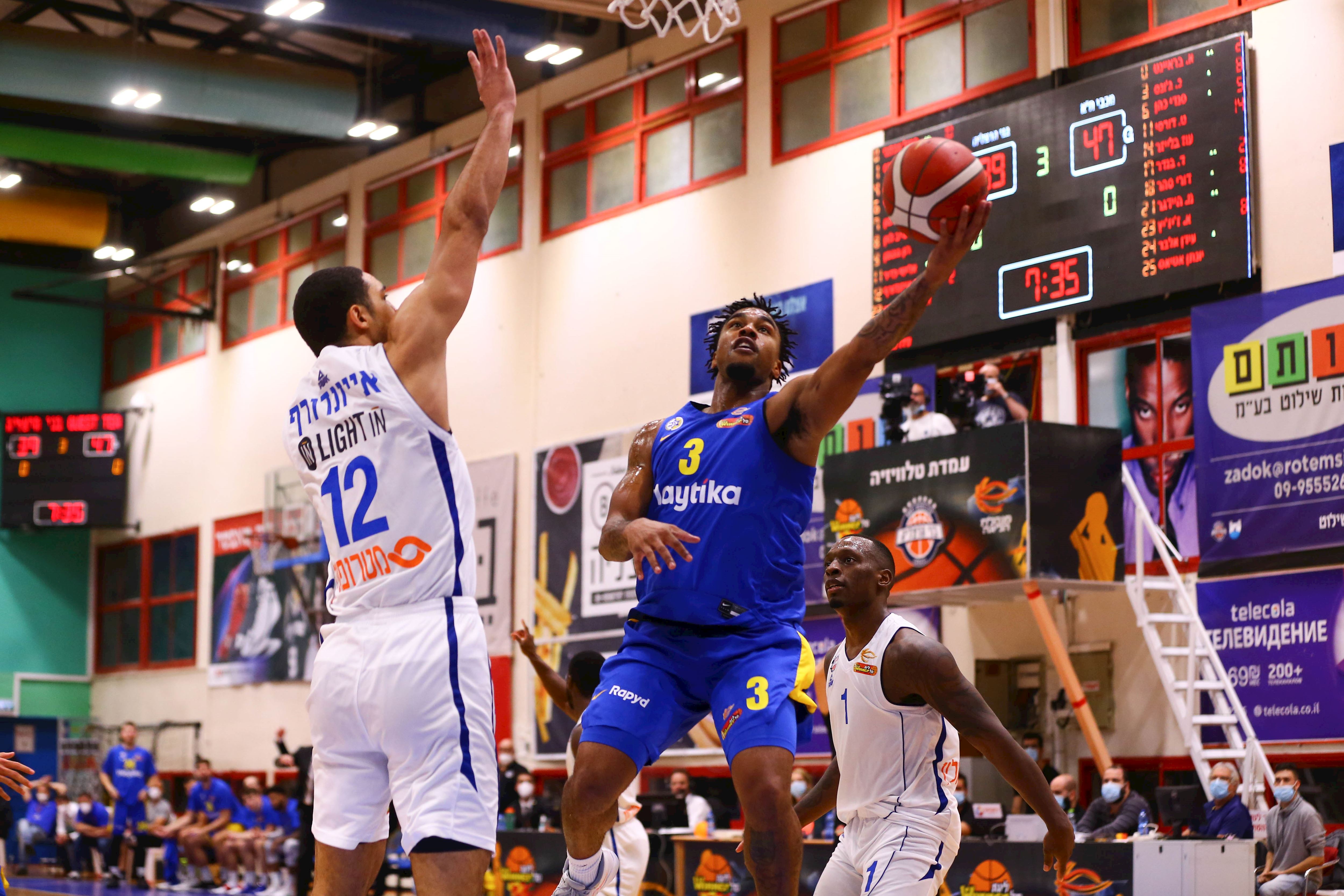 ג'ונס עולה לסל מול אייזנדורף (צילום: לירון מולדובן)