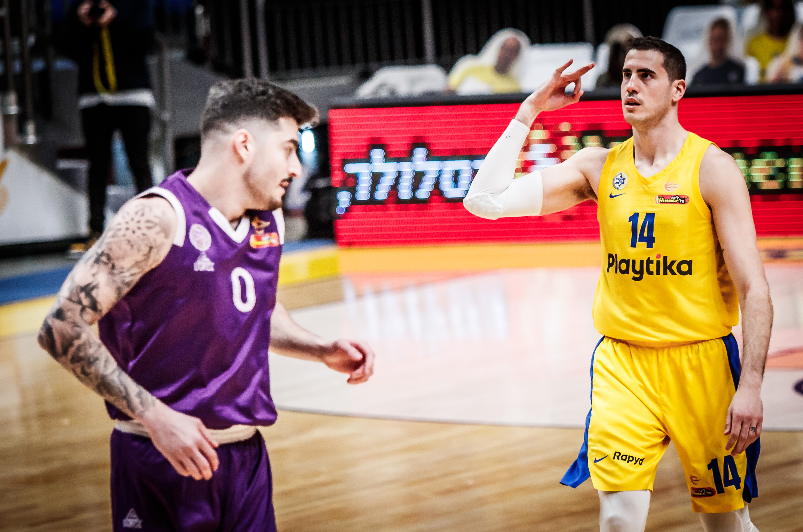 מכבי "Playtika" ת"א: ג'ונס 17 (7-11 מהשדה, 7 אסיסטים), בלייזר 16 (6-8 מהשדה), דיברתולומיאו 15 (5-6 מהשדה, 4 אסיסטים), בנדר 14 (5-5 לשתיים, 1-6 לשלוש, 3 חסימות), בראיינט 13 (5-8 מהשדה, 5 אסיסטים), ז'יז'יץ' 9 (4-6 מהשדה, 8 ריבאונדים), כהן 8 (3-9 מהשדה), קליין 6 (6-6 מהקו), אלבר 4 (3 חטיפות), סהר 3, קלויארו 2. כן שותף: זוסמן.