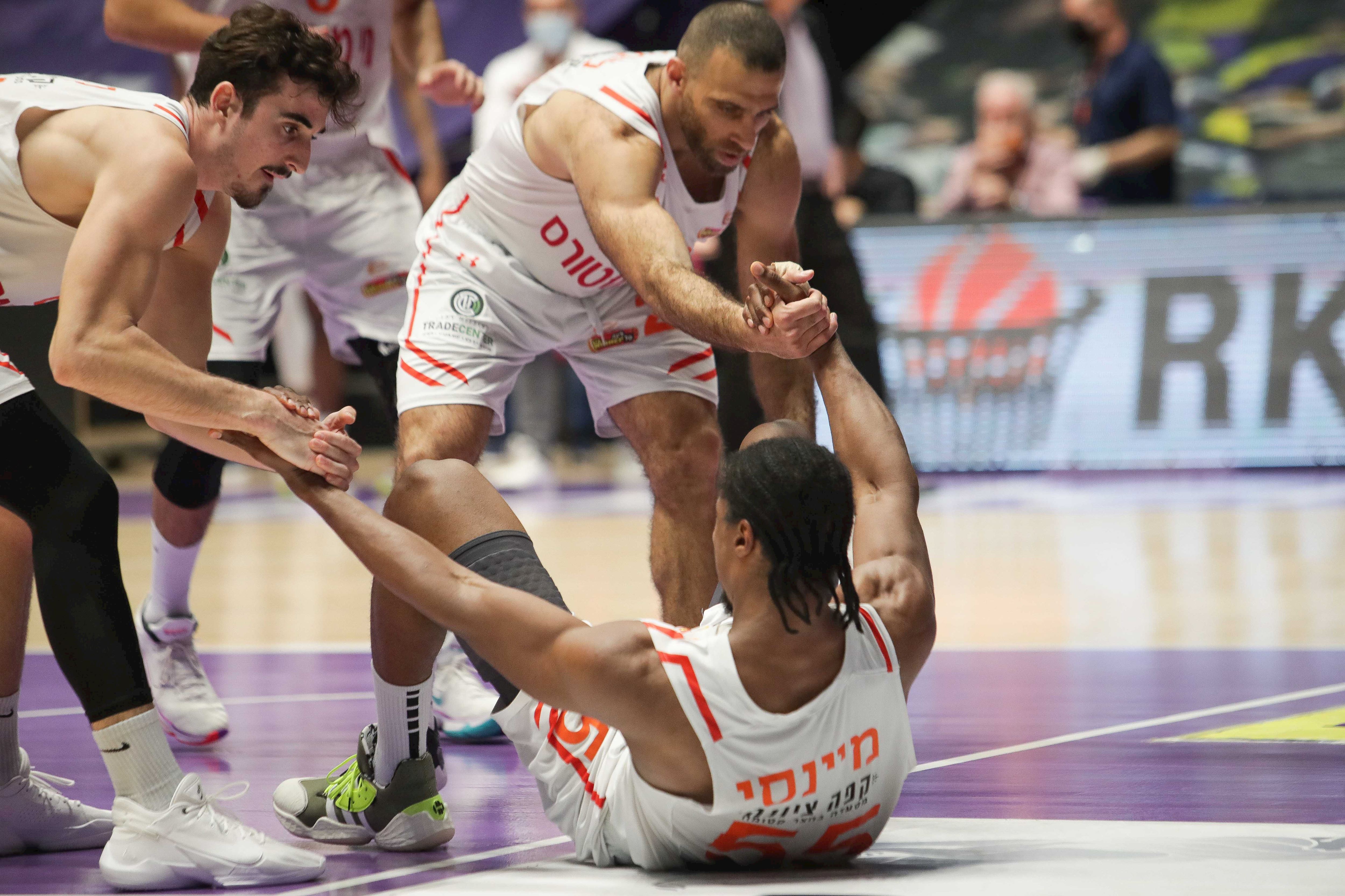 לימונד וקורנליוס מסייעים למיינסי לקום (צילום: דודי אוחיון)