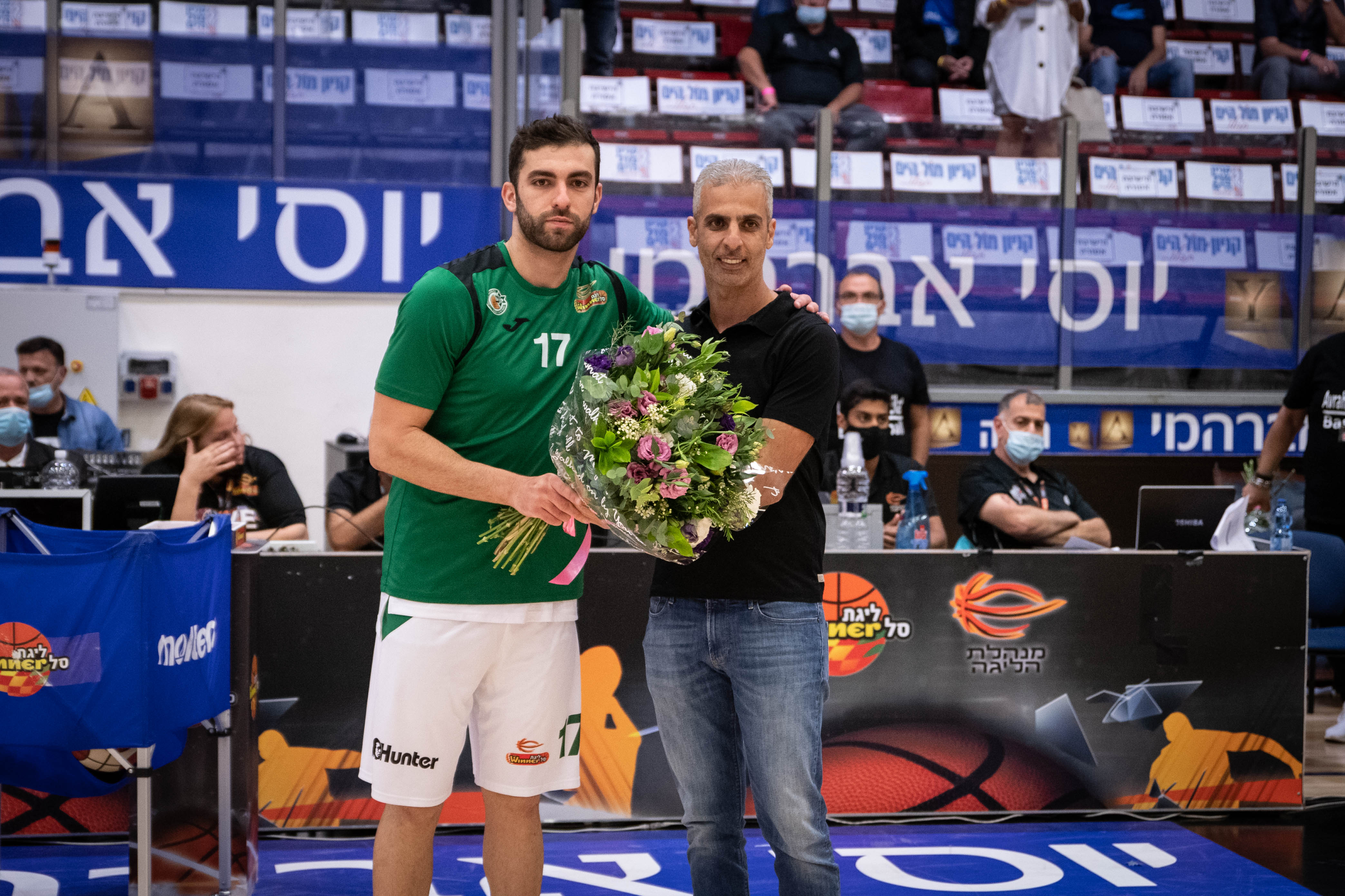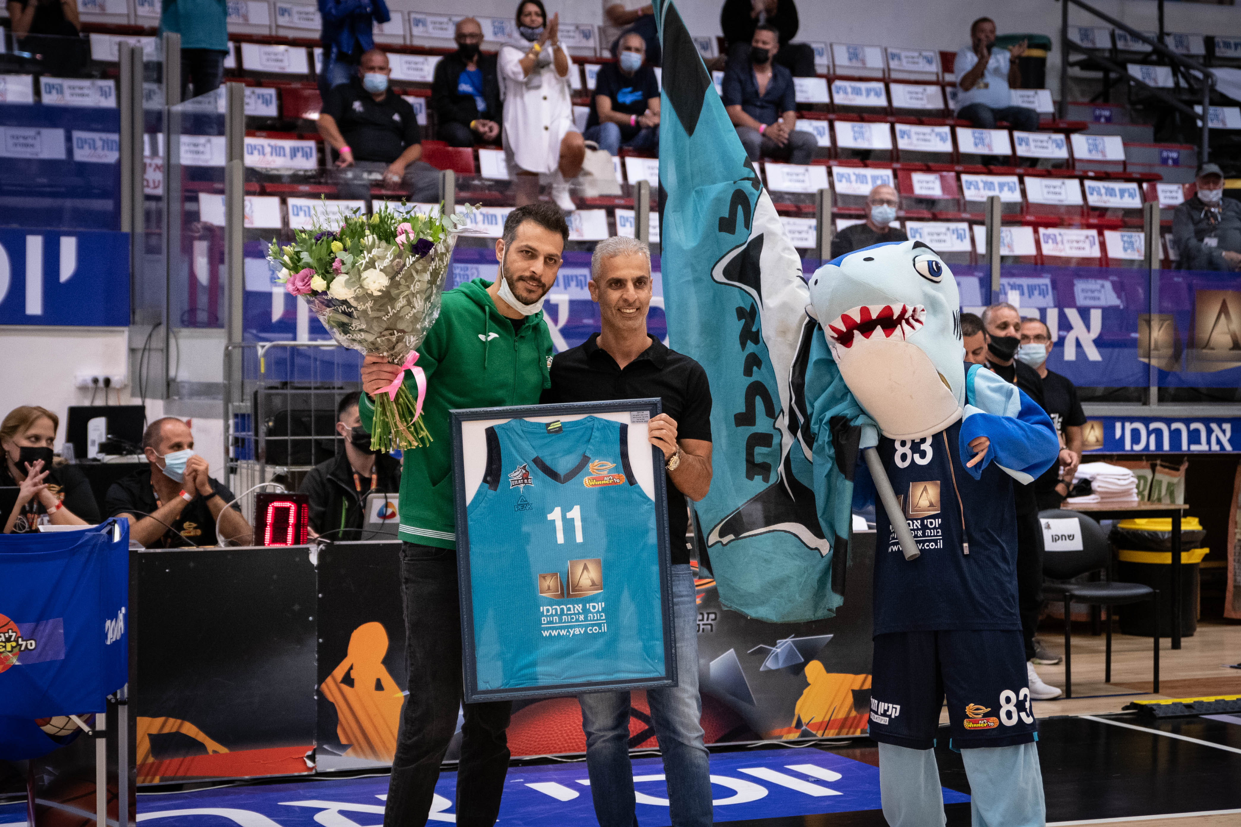 בן שימול ושרון קיבלו תשורות מקבוצתם לשעבר (צילומים: רז גליל)